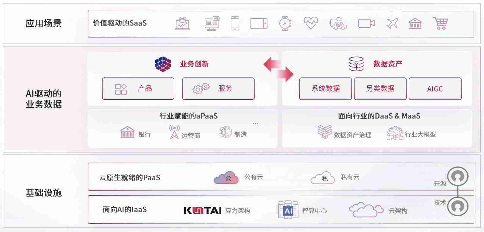 数字时代,,,围绕企业数字化转型的关键要素,,,,尊龙集团数码开创性的提出数云融合战略和技术体系框架,,着力在云原生、、、数字原生、、、AI原生和信创产业上架构产品和服务能力,,,为处在不同数字化转型阶段的快消零售、、汽车、、金融、、、、医疗、、政企、、教育、、、运营商等行业客户提供泛在的敏捷IT能力和融合的数据驱动能力,,,,构建跨界融合创新的数字业务场景和新业务模式,,助力企业级客户建立面向未来的核心能力和竞争优势,,,全面推动社会的数字化、、智能化转型升级。。。